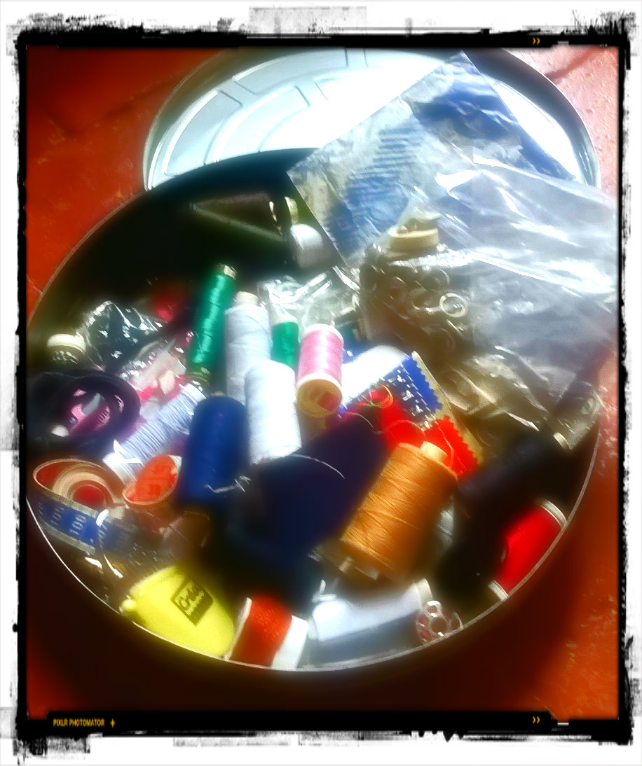 Un peu plus tard, lavée, portée plusieurs fois, réaliser que l’ourlet est tenu à grands point par un fil rose. Une robe qui a été coupée, rafistolée à la va vite. Ça fait sourire en dedans, l’avoir fait aussi ça, bien sûr, modifier – sur un coup de tête ou après mûres réflexions – une tenue, la mettre à sa main, à son corps, en modifier la forme première. Le fil rose entre les pois blanc et le tissu moiré, dissimulé par la légère brillance de l’étoffe, chuchote de point en point qu’une coupe a eu lieu, le tissu est tombé, peut-être un coup de fer pour marquer l’ourlet, la matière est trop fluide pour accepter sans regimber la tenue d’un pli, peut-être quelques aiguilles pour tenir le tout puis au milieu des bobines de fils, pas de rouge. Juste ce fil rose. Manque le net de la couture-machine qui finirait de fil rouge et gommerait la modification.